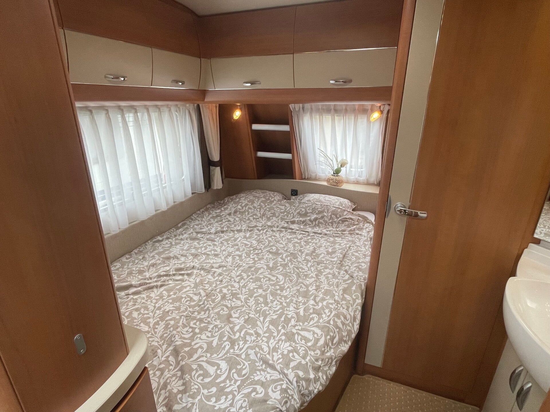 • Ruim 2-persoonsbed met veel opbergruimte (ook toegankelijk via serviceluik buiten)