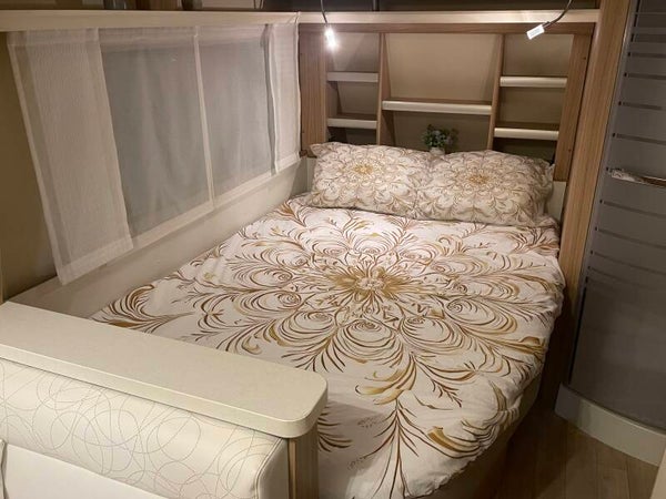 De caravan wordt volledig nagezien en wordt verkocht met garantie.