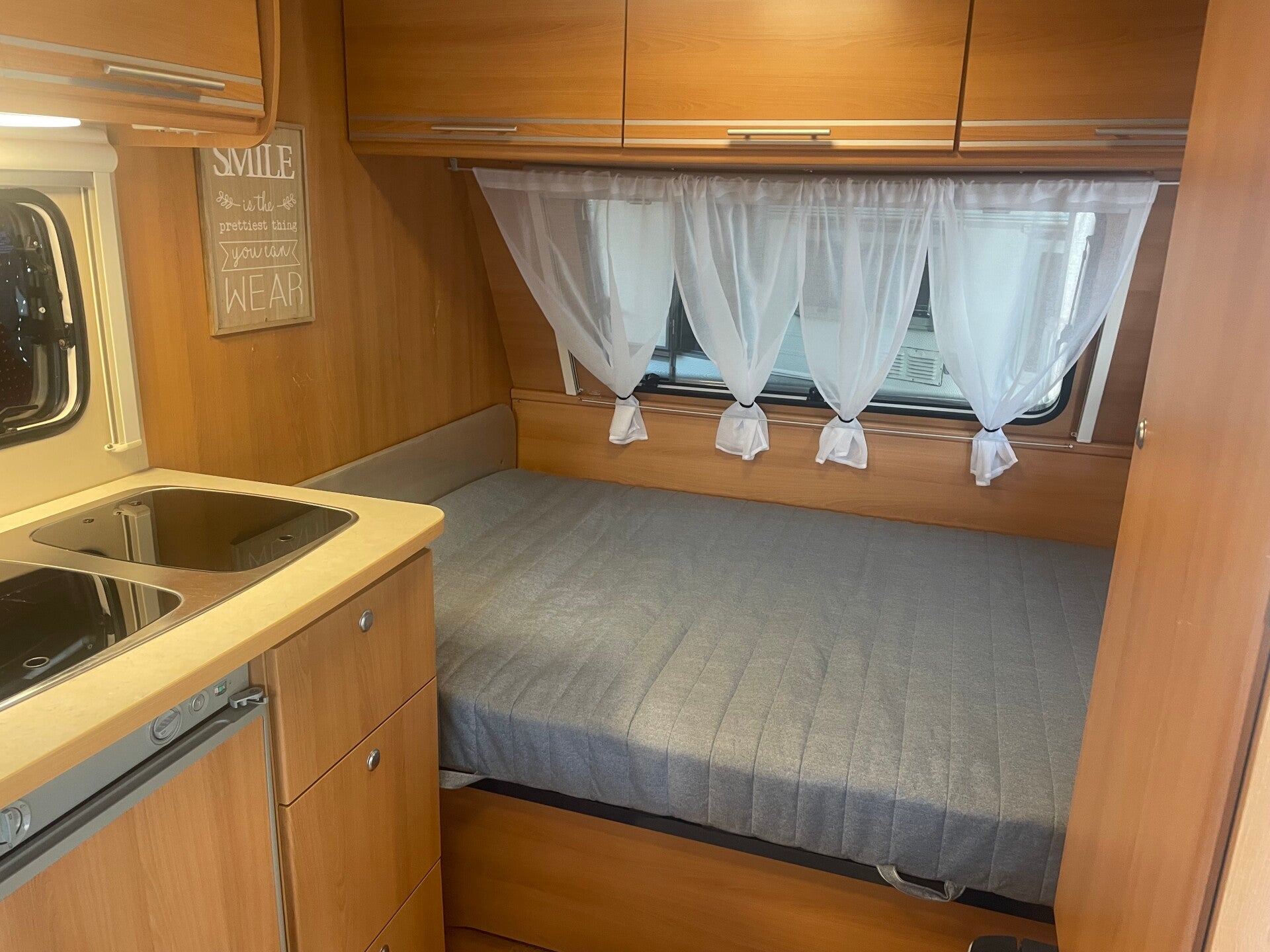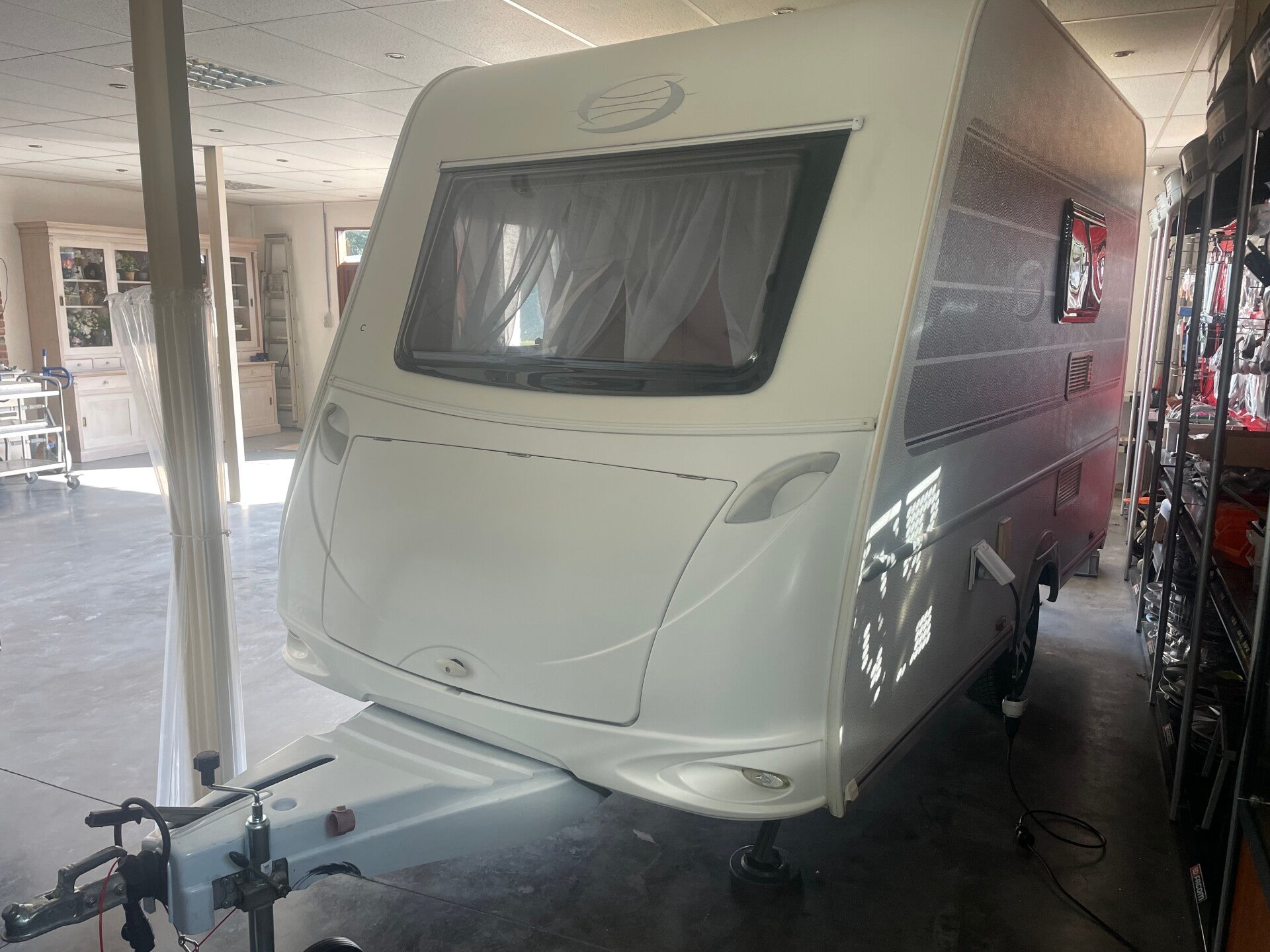 mooie caravan, 1 raam heeft een kleine beschadiging aan het binnenste glas